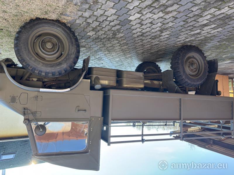 Leírás: Muzeális igazolással rendelkezik, OT-nek levizsgáztatható. A két fűthető bőrülés kivételével eredeti minden rajta. A fülke és a plató le lett véve róla úgy lett homok szórva, alváz védve és fényezve. A plató és a padok újra fázva, új ponyvával és ablakokkal. Rengeteg pótalkatrésszel (első híd, hátsó híd, alváz, váltó, motor, 4 ponyvatartó ív). Adok hozzá még 4 military gumit.